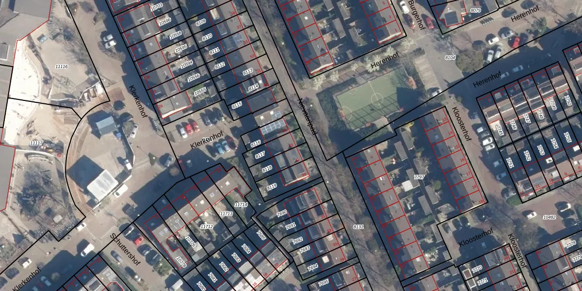 Gebruik de zoekbalk of klik op een perceel voor informatie over de adressen binnen dit perceel.