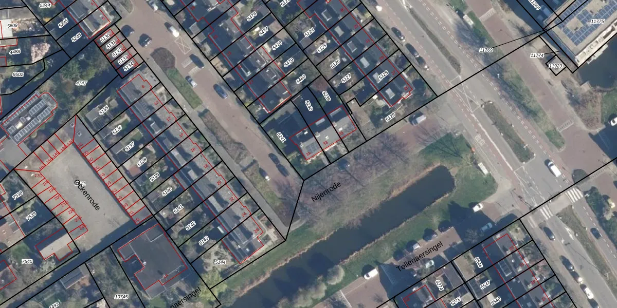Gebruik de zoekbalk of klik op een perceel voor informatie over de adressen binnen dit perceel.