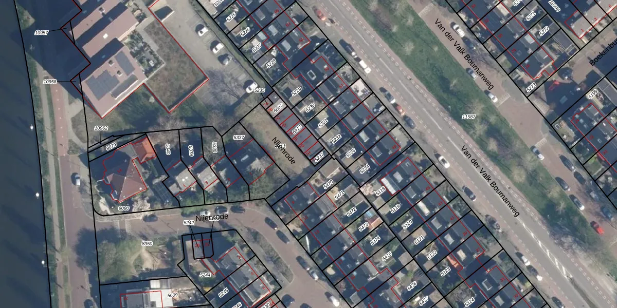 Nijenrode 7-H is gelegen op kadastraal perceel LDD00A6412. Deze kadastrale aanduiding is uniek en wordt gebruikt door het Kadaster om eigendomsrechten en andere zakelijke rechten vast te leggen. Het perceel maakt onderdeel uit van de kadastrale gemeente Leiderdorp.