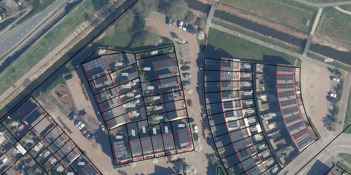 Gebruik de zoekbalk of klik op een perceel voor informatie over de adressen binnen dit perceel.