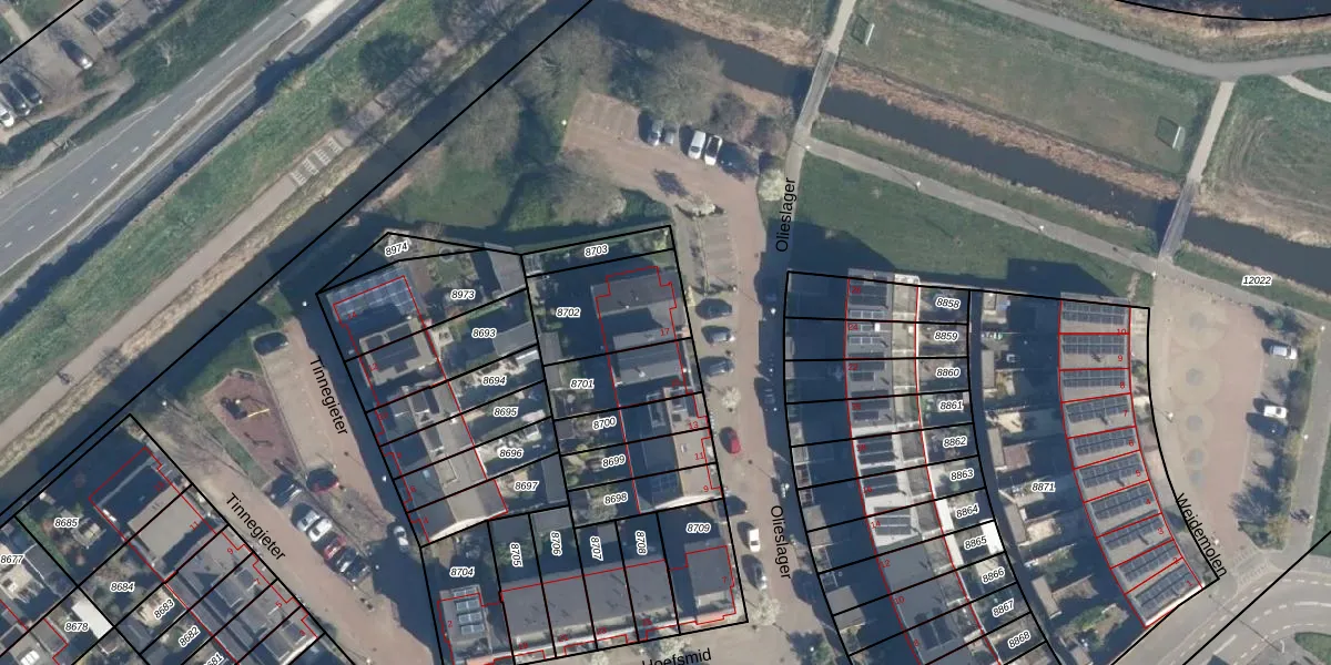 Gebruik de zoekbalk of klik op een perceel voor informatie over de adressen binnen dit perceel.