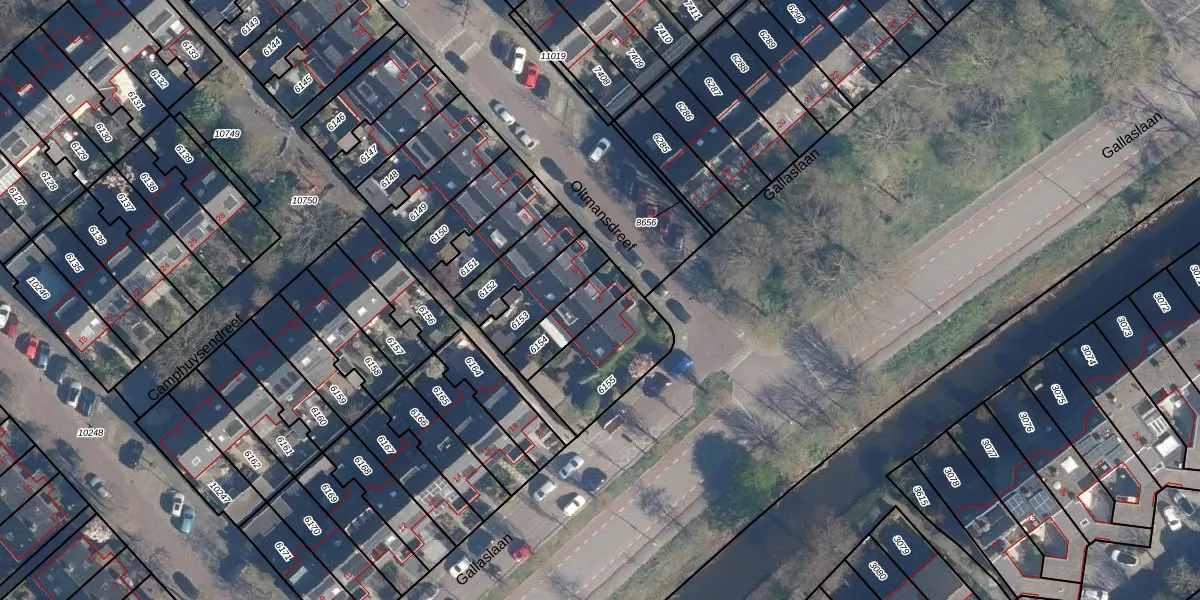 Gebruik de zoekbalk of klik op een perceel voor informatie over de adressen binnen dit perceel.