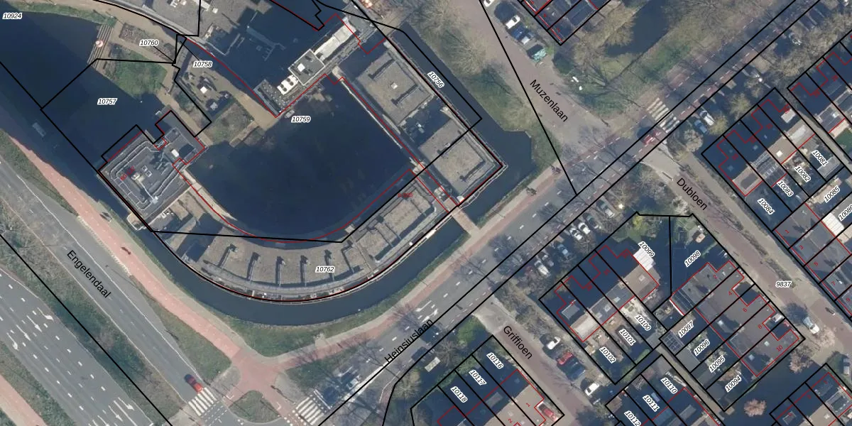 Het adres is gelegen op perceel 10762 in de sectie A en de kadastrale gemeente Leiderdorp. De kadastrale aanduiding is aldus LDD00-A-10762. Het perceel is kleiner dan gemiddeld in Leiderdorp. Het perceel is 1007 m² groot, terwijl het gemiddelde ligt op 1289,87 m². De grootste perceeloppervlakte in de kadastrale gemeente is 43,4 ha. De kleinste oppervlakte bedraagt 0 m². Op het perceel liggen in totaal 55 adressen. In de Basisregistratie Kadaster (BRK) werden de grenzen van het perceel geregistreerd op 04-04-2012.