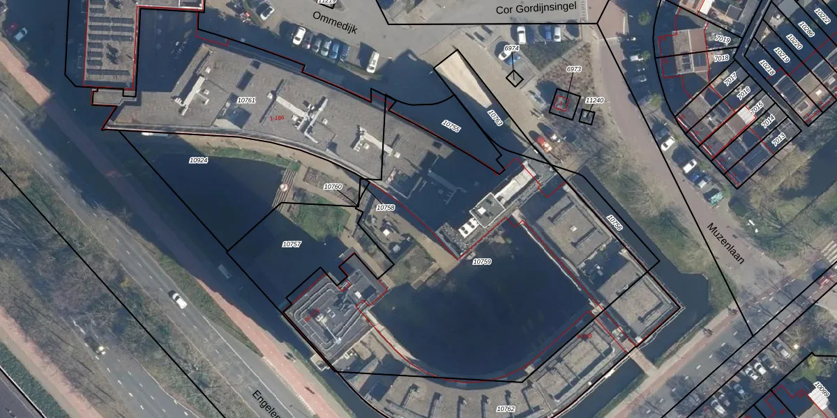 Het adres is gelegen op perceel 10759 in de sectie A en de kadastrale gemeente Leiderdorp. De kadastrale aanduiding is aldus LDD00-A-10759. Het perceel is met 3301 m² relatief groot. Het gemiddelde ligt in de kadastrale gemeente Leiderdorp op 1289,87 m². Het grootste perceel in de kadastrale gemeente is 43,4 ha. Het kleinste perceel heeft een oppervlakte van 0 m². Er zijn 79 adressen aanwezig op het perceel. De huidige grenzen van het perceel zijn digitaal in de Basisregistratie Kadaster (BRK) geregistreerd op 04-04-2012.