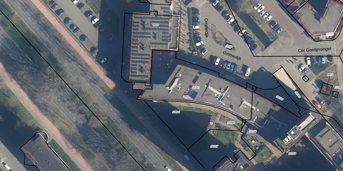Het perceel waarop Ommedijk 151 staat heeft een oppervlakte van 1428 m². Dit is een zeer groot perceel. De perceeloppervlakte wordt geregistreerd door het Kadaster. Gedetailleerde informatie over de maten van dit perceel kunt u vinden in het rapport Kadastrale kaart met maatvoering van Ommedijk 151.