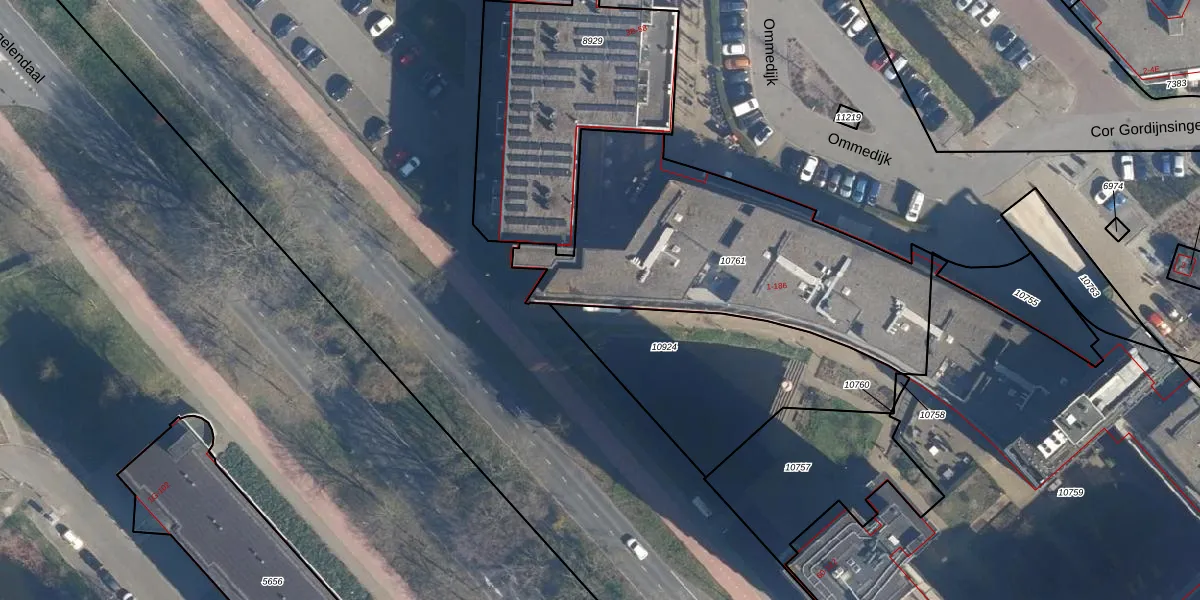 Het perceel waarop Ommedijk 184 staat heeft een oppervlakte van 1428 m². Dit is een zeer groot perceel. De perceeloppervlakte wordt geregistreerd door het Kadaster. Gedetailleerde informatie over de maten van dit perceel kunt u vinden in het rapport Kadastrale kaart met maatvoering van Ommedijk 184.
