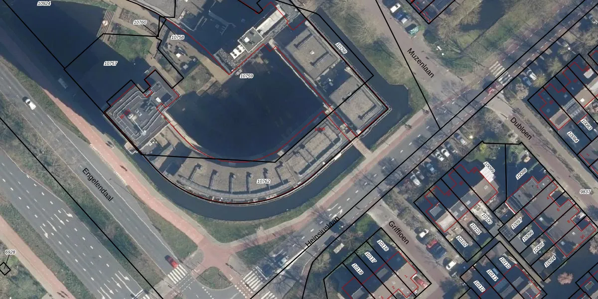 Het adres is gelegen op perceel 10762 in de sectie A en de kadastrale gemeente Leiderdorp. De kadastrale aanduiding is aldus LDD00-A-10762. Het perceel is kleiner dan gemiddeld in Leiderdorp. Het perceel is 1007 m² groot, terwijl het gemiddelde ligt op 1289,87 m². Het kleinste perceel in de kadastrale gemeente is 0 m² groot. De grootste perceeloppervlakte is 43,4 ha. Op het perceel zijn 55 adressen aanwezig. De huidige grenzen van het perceel zijn digitaal in de Basisregistratie Kadaster (BRK) geregistreerd op 04-04-2012.