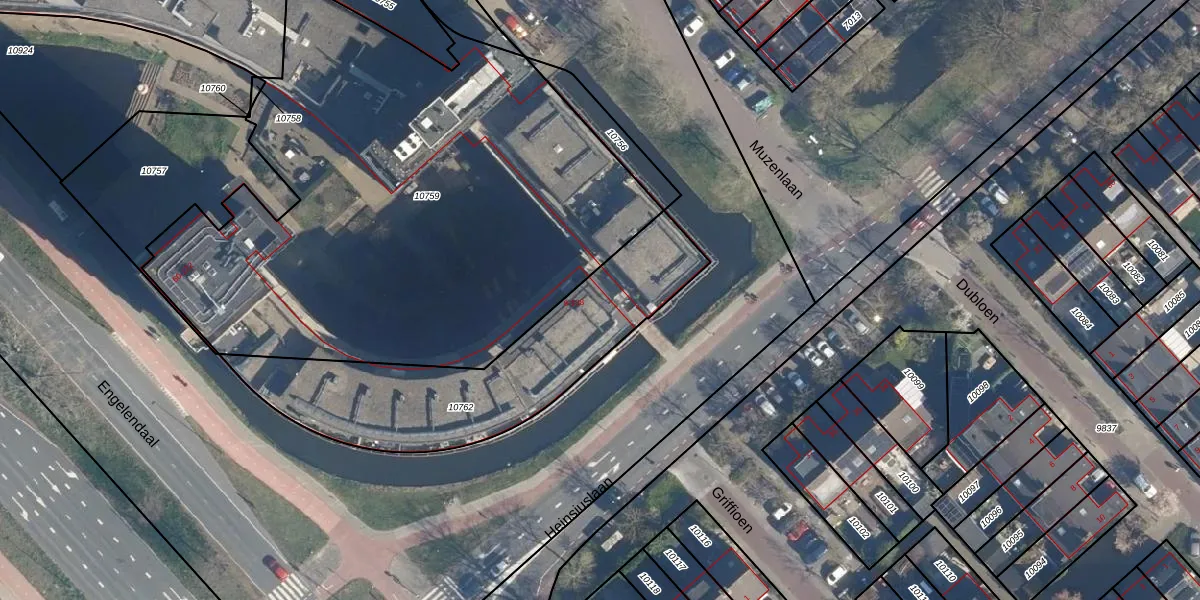 Het adres is gelegen op perceel 10762 in de sectie A en de kadastrale gemeente Leiderdorp. De kadastrale aanduiding is aldus LDD00-A-10762. Het perceel is kleiner dan gemiddeld in Leiderdorp. Het perceel is 1007 m² groot, terwijl het gemiddelde ligt op 1289,87 m². De grootste perceeloppervlakte in de kadastrale gemeente is 43,4 ha. De kleinste oppervlakte bedraagt 0 m². Er zijn 55 adressen aanwezig op het perceel. De huidige grenzen van het perceel zijn digitaal in de Basisregistratie Kadaster (BRK) geregistreerd op 04-04-2012.