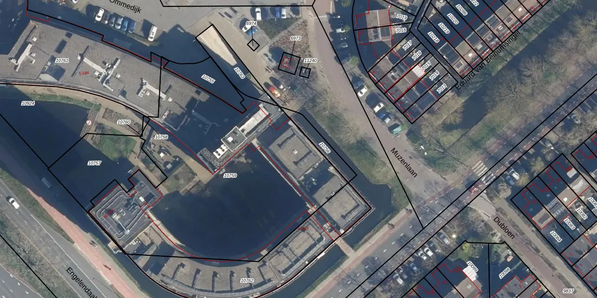 Het adres is gelegen op perceel 10759 in de sectie A en de kadastrale gemeente Leiderdorp. De kadastrale aanduiding is aldus LDD00-A-10759. De gemiddelde perceeloppervlakte in de kadastrale gemeente Leiderdorp is 1289,87 m². Dit perceel is met zijn 3301 m² dus groter dan gemiddeld. Het grootste perceel in de kadastrale gemeente is 43,4 ha. Het kleinste perceel heeft een oppervlakte van 0 m². Op het perceel liggen in totaal 79 adressen. De huidige grenzen van het perceel zijn digitaal in de Basisregistratie Kadaster (BRK) geregistreerd op 04-04-2012.