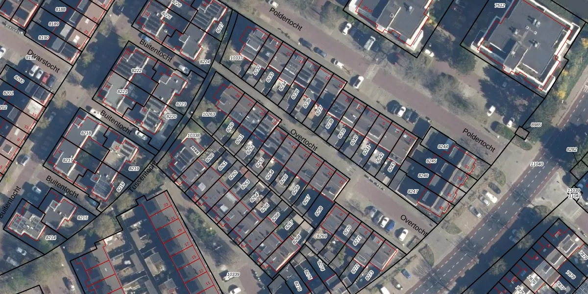 Het perceel waarop Overtocht 19 staat heeft een oppervlakte van 94 m². Dit is een klein perceel. De perceeloppervlakte wordt geregistreerd door het Kadaster. Gedetailleerde informatie over de maten van dit perceel kunt u vinden in het rapport Kadastrale kaart met maatvoering van Overtocht 19.