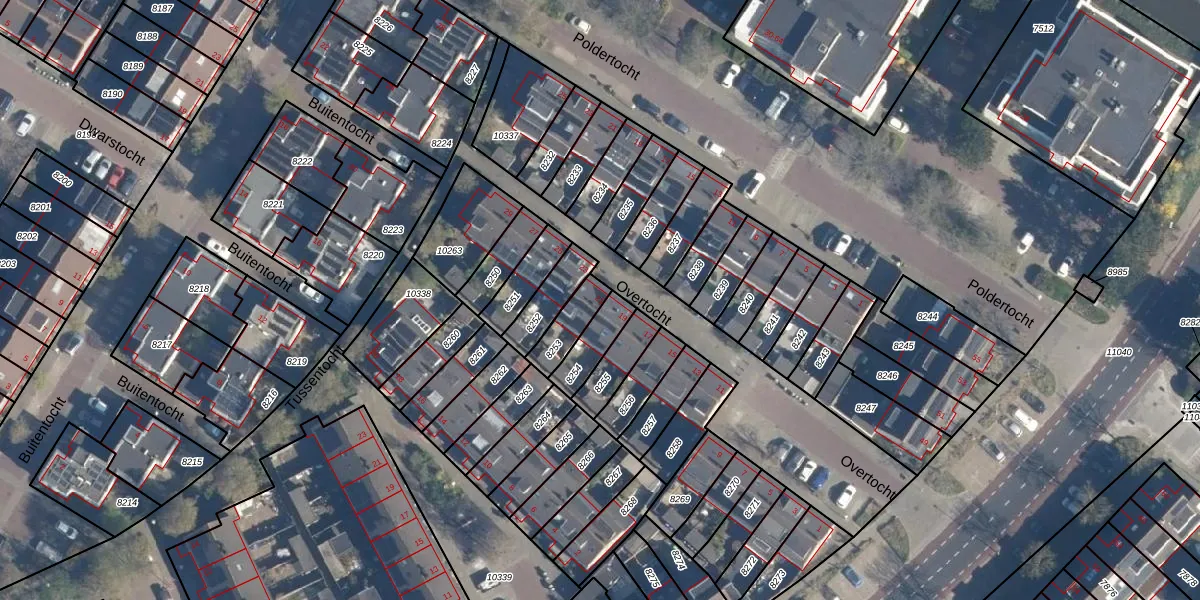 Gebruik de zoekbalk of klik op een perceel voor informatie over de adressen binnen dit perceel.