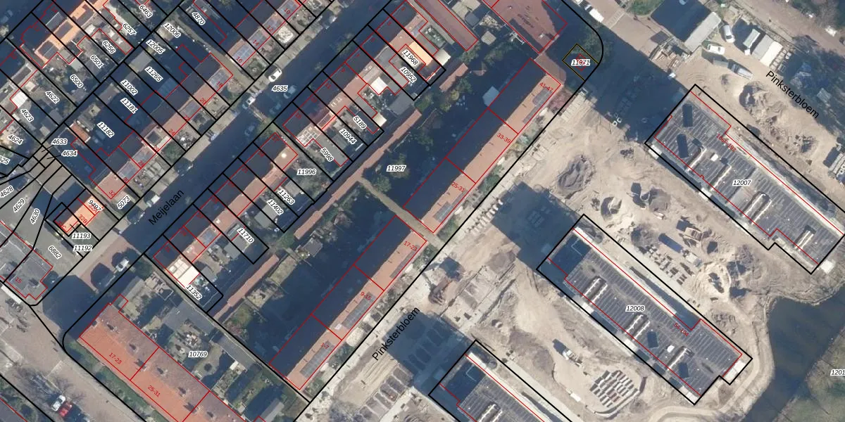 Het perceel waarop Pinksterbloem 27 staat heeft een oppervlakte van 4319 m². Dit is een zeer groot perceel. De perceeloppervlakte wordt geregistreerd door het Kadaster. Gedetailleerde informatie over de maten van dit perceel kunt u vinden in het rapport Kadastrale kaart met maatvoering van Pinksterbloem 27.
