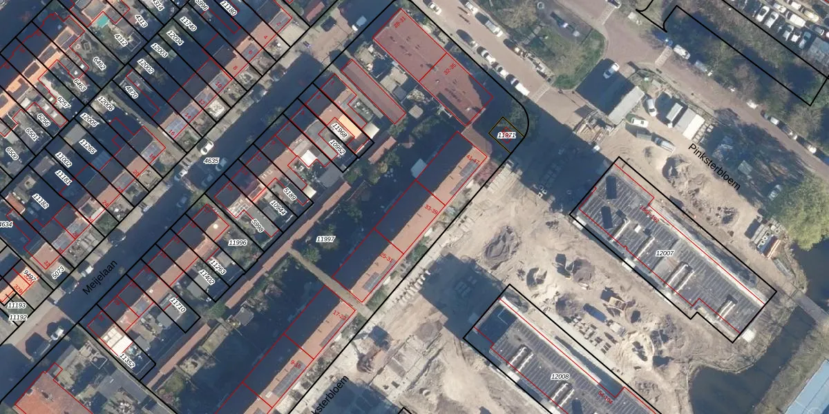 Het perceel waarop Pinksterbloem 39 staat heeft een oppervlakte van 4319 m². Dit is een zeer groot perceel. De perceeloppervlakte wordt geregistreerd door het Kadaster. Gedetailleerde informatie over de maten van dit perceel kunt u vinden in het rapport Kadastrale kaart met maatvoering van Pinksterbloem 39.