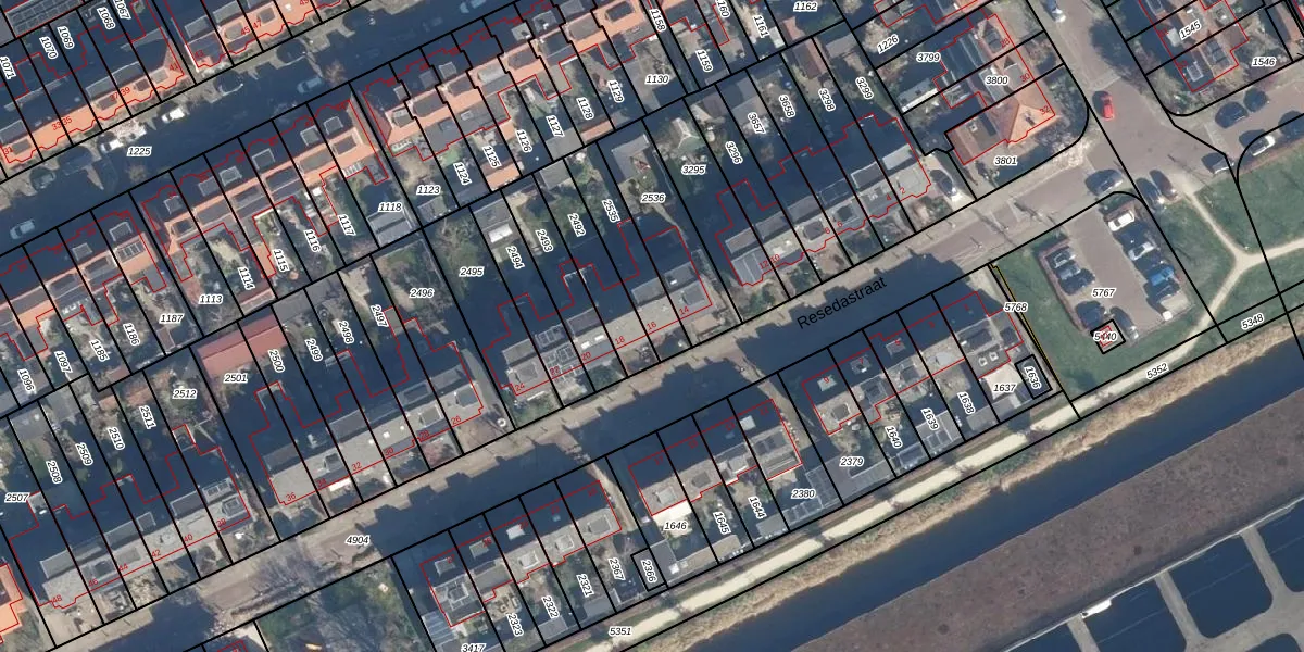 Resedastraat 16 is gelegen op kadastraal perceel LDD00B2535. Deze kadastrale aanduiding is uniek en wordt gebruikt door het Kadaster om eigendomsrechten en andere zakelijke rechten vast te leggen. Het perceel maakt onderdeel uit van de kadastrale gemeente Leiderdorp.