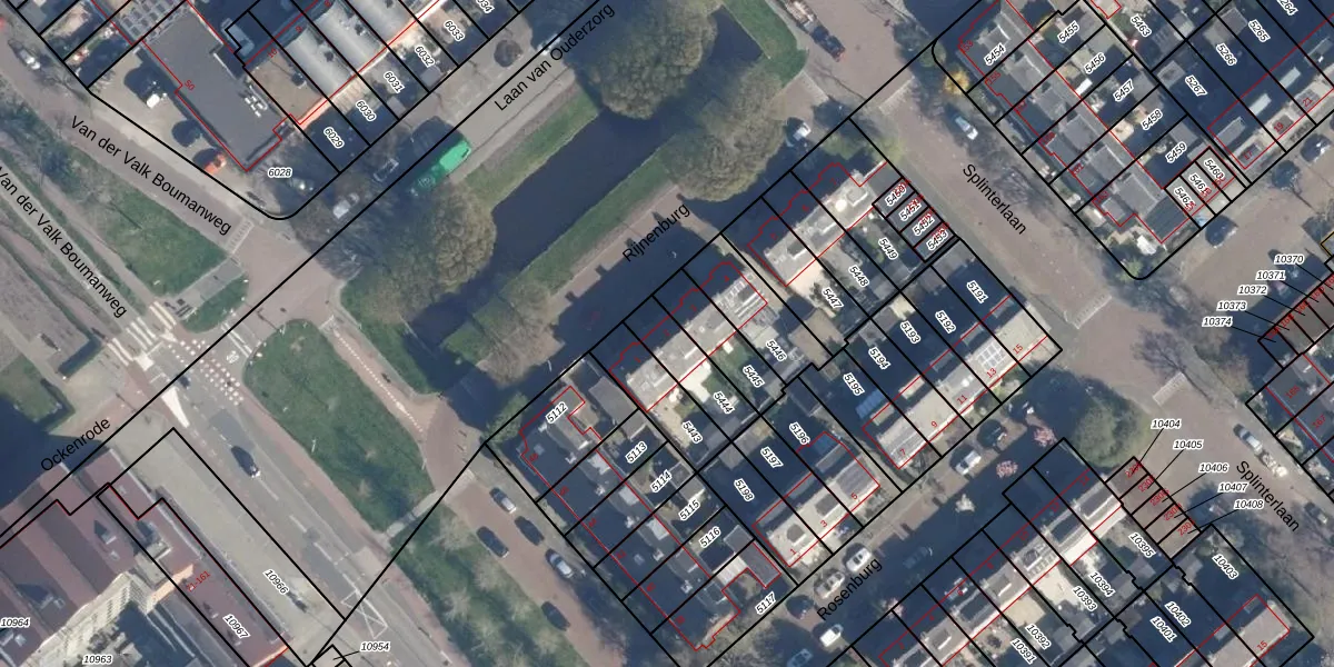 Het perceel waarop het adres ligt is LDD00-A-5444. De afkorting 'LDD00' staat voor kadastrale gemeente Leiderdorp. De gemiddelde perceelgrootte in Leiderdorp is 1290,14 m². Dit perceel is kleiner: de perceeloppervlakte bedraagt 147 m². Het kleinste perceel in de kadastrale gemeente is 0 m² groot. De grootste perceeloppervlakte is 43,4 ha. Op het perceel bevinden zich geen andere adressen. In de Basisregistratie Kadaster (BRK) werden de grenzen van het perceel geregistreerd op 09-11-2004.