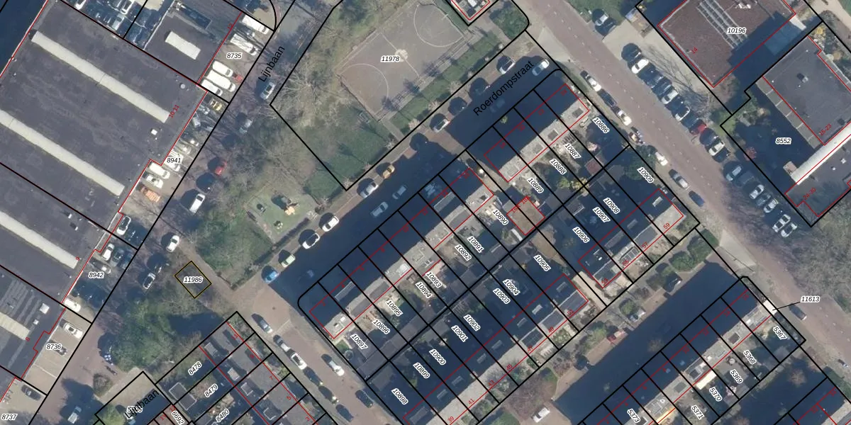 Roerdompstraat 12 is gelegen op kadastraal perceel LDD00A10892. Deze kadastrale aanduiding is uniek en wordt gebruikt door het Kadaster om eigendomsrechten en andere zakelijke rechten vast te leggen. Het perceel maakt onderdeel uit van de kadastrale gemeente Leiderdorp.
