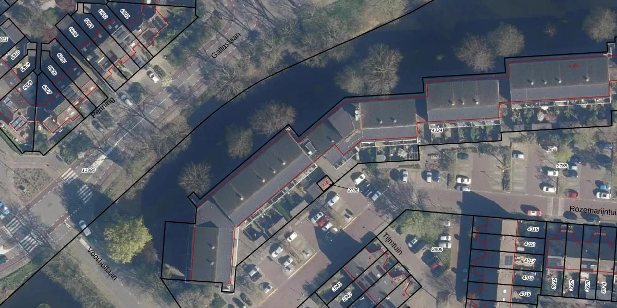 Het perceel waarop het adres ligt is LDD00-B-4324. De afkorting 'LDD00' staat voor kadastrale gemeente Leiderdorp. De gemiddelde perceeloppervlakte in de kadastrale gemeente Leiderdorp is 1290,14 m². Dit perceel is met zijn 3662 m² dus groter dan gemiddeld. Het kleinste perceel in de kadastrale gemeente is 0 m² groot. De grootste perceeloppervlakte is 43,4 ha. Er zijn 87 adressen aanwezig op het perceel. De laatste wijziging in het de Basisregistratie Kadaster (BRK) was op 14-11-2008.