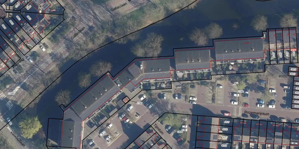 Het perceel waarop het adres ligt is LDD00-B-4324. De afkorting 'LDD00' staat voor kadastrale gemeente Leiderdorp. De gemiddelde perceeloppervlakte in de kadastrale gemeente Leiderdorp is 1290,14 m². Dit perceel is met zijn 3662 m² dus groter dan gemiddeld. Het kleinste perceel in de kadastrale gemeente is 0 m² groot. De grootste perceeloppervlakte is 43,4 ha. Op het perceel liggen in totaal 87 adressen. In de Basisregistratie Kadaster (BRK) werden de grenzen van het perceel geregistreerd op 14-11-2008.