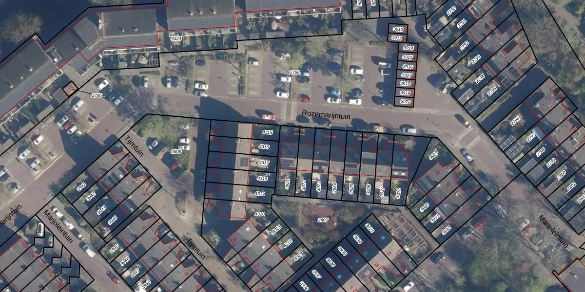 Het perceel waarop Rozemarijntuin 2 staat heeft een oppervlakte van 163 m². Dit is een middelgroot perceel. De perceeloppervlakte wordt geregistreerd door het Kadaster. Gedetailleerde informatie over de maten van dit perceel kunt u vinden in het rapport Kadastrale kaart met maatvoering van Rozemarijntuin 2.