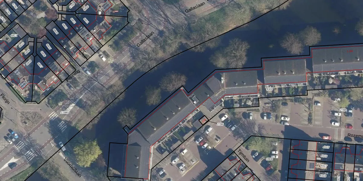 Het perceel waarop het adres ligt is LDD00-B-4324. De afkorting 'LDD00' staat voor kadastrale gemeente Leiderdorp. De oppervlakte van het perceel is 3662 m². Dat is groter dan gemiddeld in Leiderdorp, waar de gemiddelde perceeloppervlakte op 1290,14 m² ligt. De grootste perceeloppervlakte in de kadastrale gemeente is 43,4 ha. De kleinste oppervlakte bedraagt 0 m². Op het perceel liggen in totaal 87 adressen. De laatste wijziging in het de Basisregistratie Kadaster (BRK) was op 14-11-2008.
