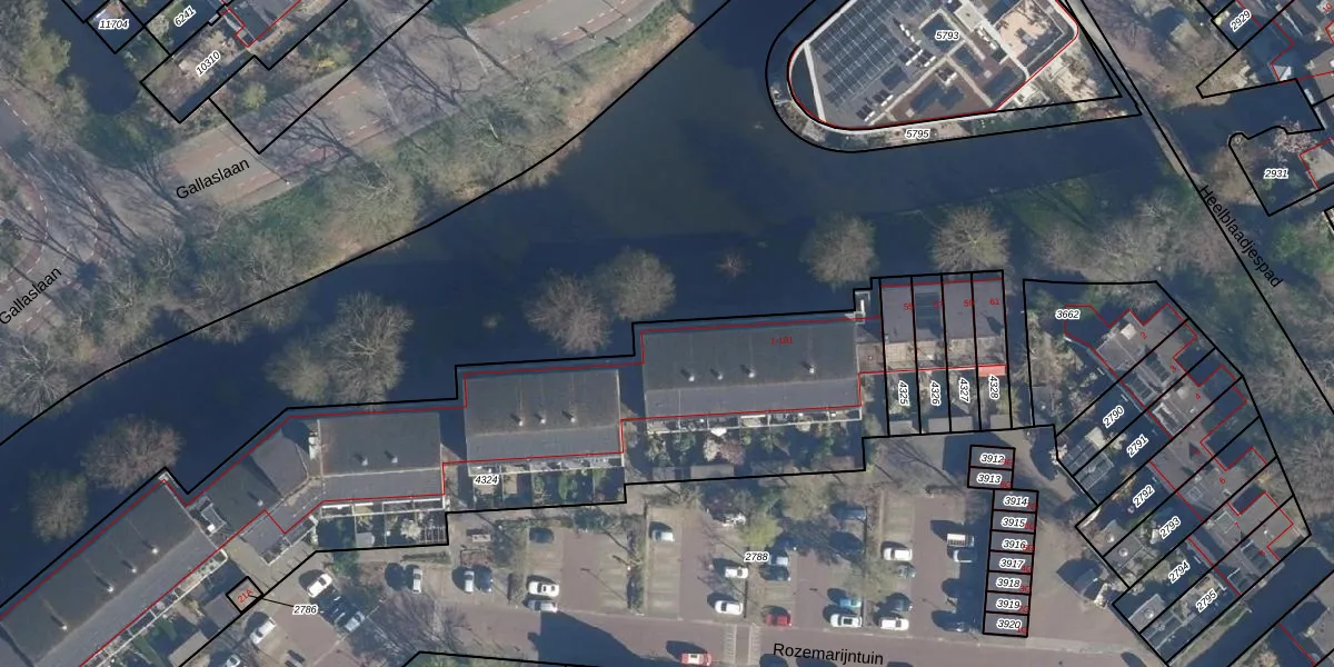 Het perceel waarop Rozemarijntuin 41 staat heeft een oppervlakte van 3662 m². Dit is een zeer groot perceel. De perceeloppervlakte wordt geregistreerd door het Kadaster. Gedetailleerde informatie over de maten van dit perceel kunt u vinden in het rapport Kadastrale kaart met maatvoering van Rozemarijntuin 41.