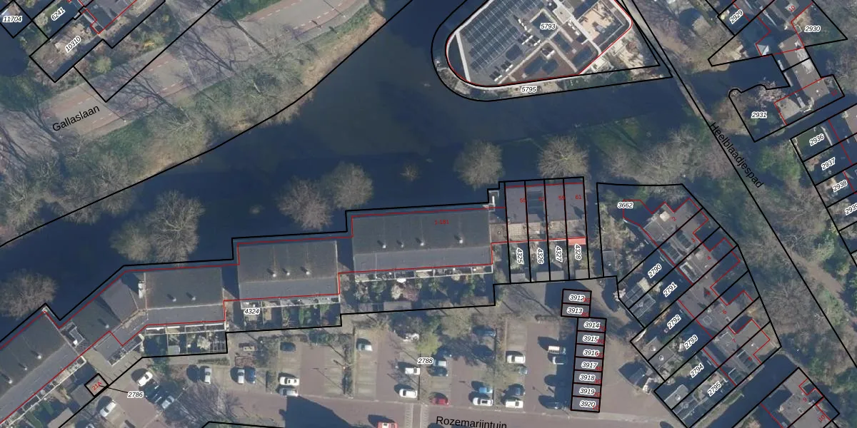 Het perceel waarop Rozemarijntuin 47 staat heeft een oppervlakte van 3662 m². Dit is een zeer groot perceel. De perceeloppervlakte wordt geregistreerd door het Kadaster. Gedetailleerde informatie over de maten van dit perceel kunt u vinden in het rapport Kadastrale kaart met maatvoering van Rozemarijntuin 47.
