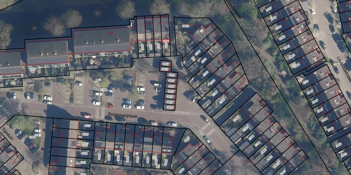 Het perceel waarop Rozemarijntuin 5-G staat heeft een oppervlakte van 20 m². Dit is een klein perceel. De perceeloppervlakte wordt geregistreerd door het Kadaster. Gedetailleerde informatie over de maten van dit perceel kunt u vinden in het rapport Kadastrale kaart met maatvoering van Rozemarijntuin 5-G.