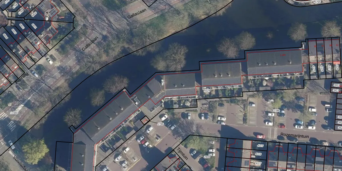 Het perceel waarop het adres ligt is LDD00-B-4324. De afkorting 'LDD00' staat voor kadastrale gemeente Leiderdorp. De oppervlakte van het perceel is 3662 m². Dat is groter dan gemiddeld in Leiderdorp, waar de gemiddelde perceeloppervlakte op 1290,14 m² ligt. De grootste perceeloppervlakte in de kadastrale gemeente is 43,4 ha. De kleinste oppervlakte bedraagt 0 m². Er zijn 87 adressen aanwezig op het perceel. De huidige grenzen van het perceel zijn digitaal in de Basisregistratie Kadaster (BRK) geregistreerd op 14-11-2008.