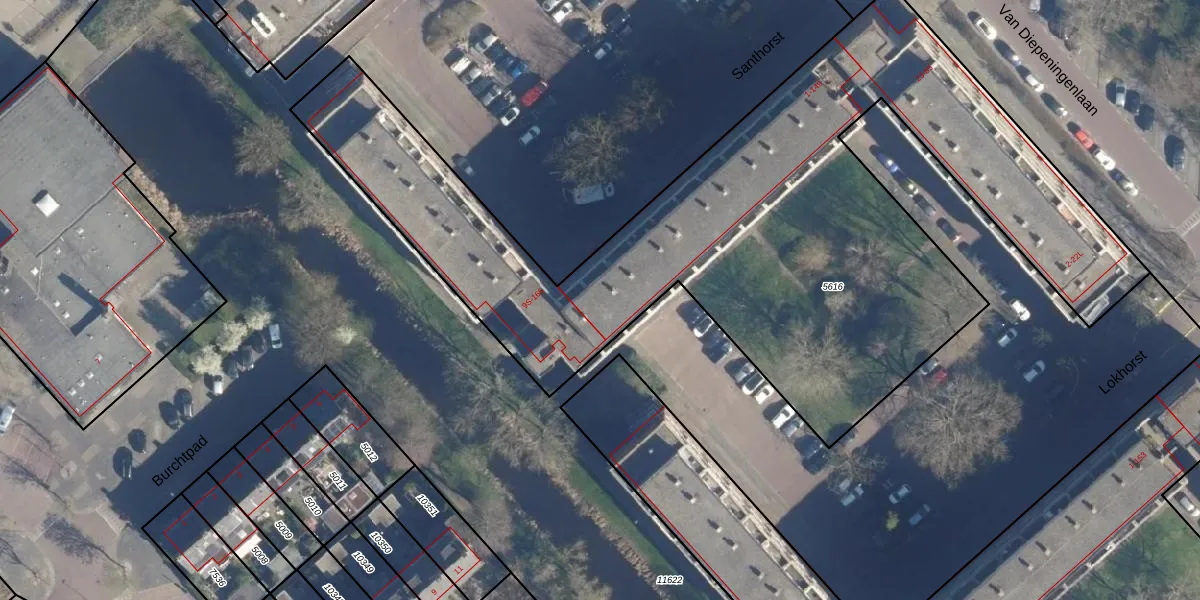 Het perceel waarop het adres ligt is LDD00-A-5616. De afkorting 'LDD00' staat voor kadastrale gemeente Leiderdorp. Het perceel is met 3876 m² relatief groot. Het gemiddelde ligt in de kadastrale gemeente Leiderdorp op 1289,87 m². Het kleinste perceel in de kadastrale gemeente is 0 m² groot. De grootste perceeloppervlakte is 43,4 ha. Op het perceel liggen in totaal 110 adressen. De huidige grenzen van het perceel zijn digitaal in de Basisregistratie Kadaster (BRK) geregistreerd op 03-05-2007.