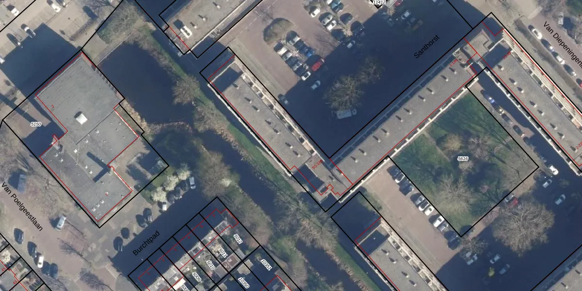 Het perceel waarop het adres ligt is LDD00-A-5616. De afkorting 'LDD00' staat voor kadastrale gemeente Leiderdorp. Het perceel is met 3876 m² relatief groot. Het gemiddelde ligt in de kadastrale gemeente Leiderdorp op 1289,87 m². Het kleinste perceel in de kadastrale gemeente is 0 m² groot. De grootste perceeloppervlakte is 43,4 ha. Op het perceel liggen in totaal 110 adressen. In de Basisregistratie Kadaster (BRK) werden de grenzen van het perceel geregistreerd op 03-05-2007.