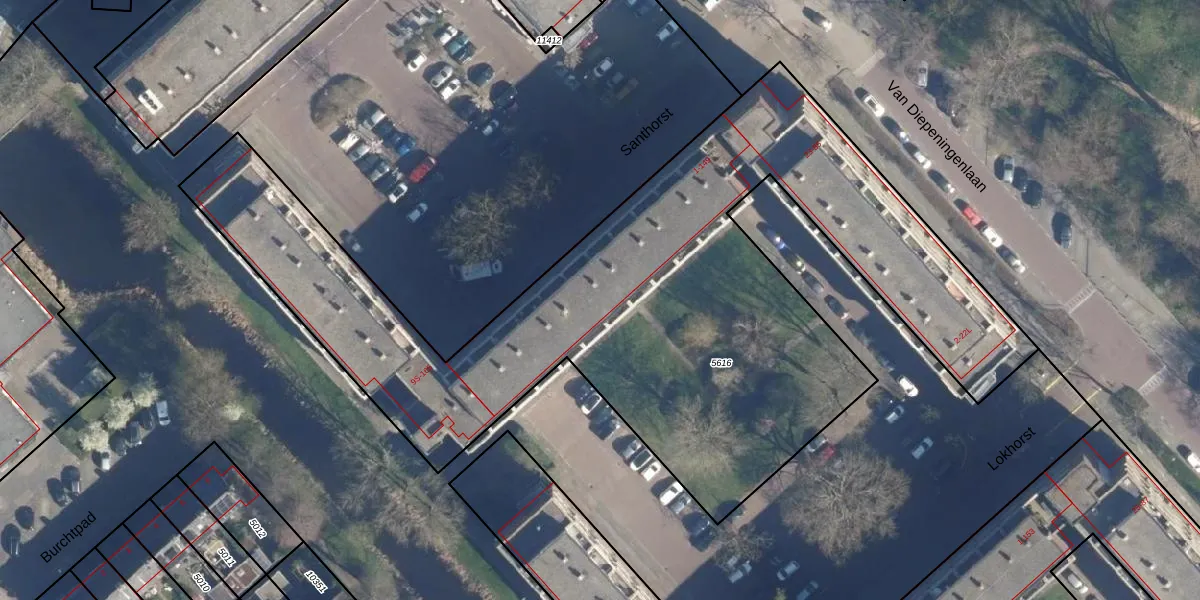 Het perceel waarop Santhorst 139 staat heeft een oppervlakte van 3876 m². Dit is een zeer groot perceel. De perceeloppervlakte wordt geregistreerd door het Kadaster. Gedetailleerde informatie over de maten van dit perceel kunt u vinden in het rapport Kadastrale kaart met maatvoering van Santhorst 139.