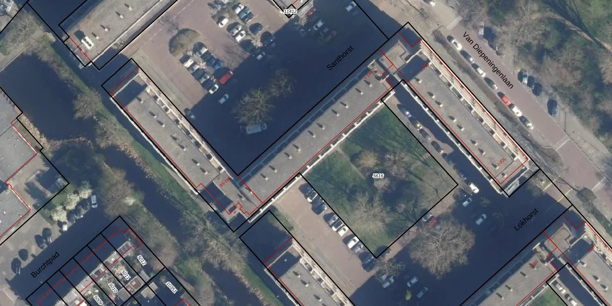 Het perceel waarop Santhorst 141 staat heeft een oppervlakte van 3876 m². Dit is een zeer groot perceel. De perceeloppervlakte wordt geregistreerd door het Kadaster. Gedetailleerde informatie over de maten van dit perceel kunt u vinden in het rapport Kadastrale kaart met maatvoering van Santhorst 141.