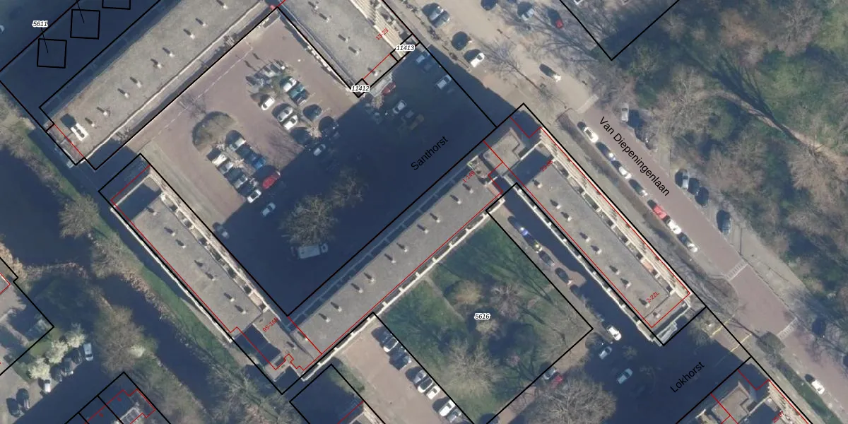 Het perceel waarop Santhorst 3 staat heeft een oppervlakte van 3876 m². Dit is een zeer groot perceel. De perceeloppervlakte wordt geregistreerd door het Kadaster. Gedetailleerde informatie over de maten van dit perceel kunt u vinden in het rapport Kadastrale kaart met maatvoering van Santhorst 3.