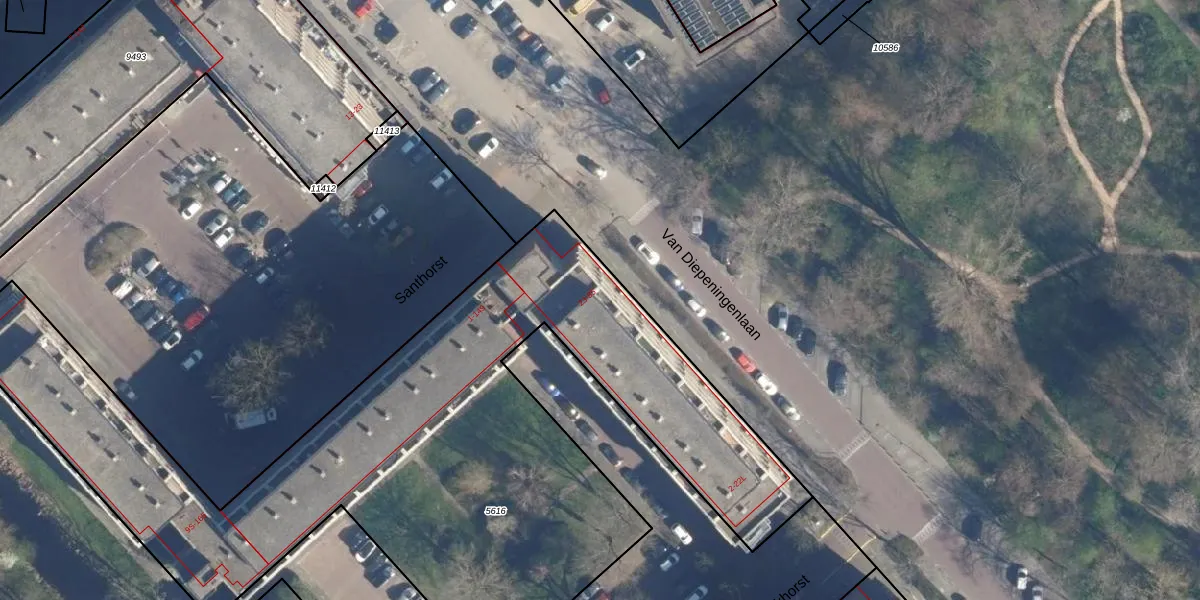 Het perceel waarop Santhorst 47 staat heeft een oppervlakte van 3876 m². Dit is een zeer groot perceel. De perceeloppervlakte wordt geregistreerd door het Kadaster. Gedetailleerde informatie over de maten van dit perceel kunt u vinden in het rapport Kadastrale kaart met maatvoering van Santhorst 47.