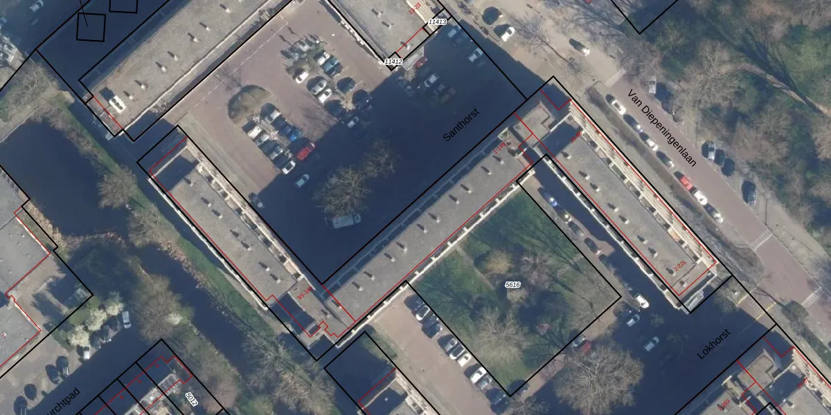 Santhorst 5-S is gelegen op kadastraal perceel LDD00A5616. Deze kadastrale aanduiding is uniek en wordt gebruikt door het Kadaster om eigendomsrechten en andere zakelijke rechten vast te leggen. Het perceel maakt onderdeel uit van de kadastrale gemeente Leiderdorp.