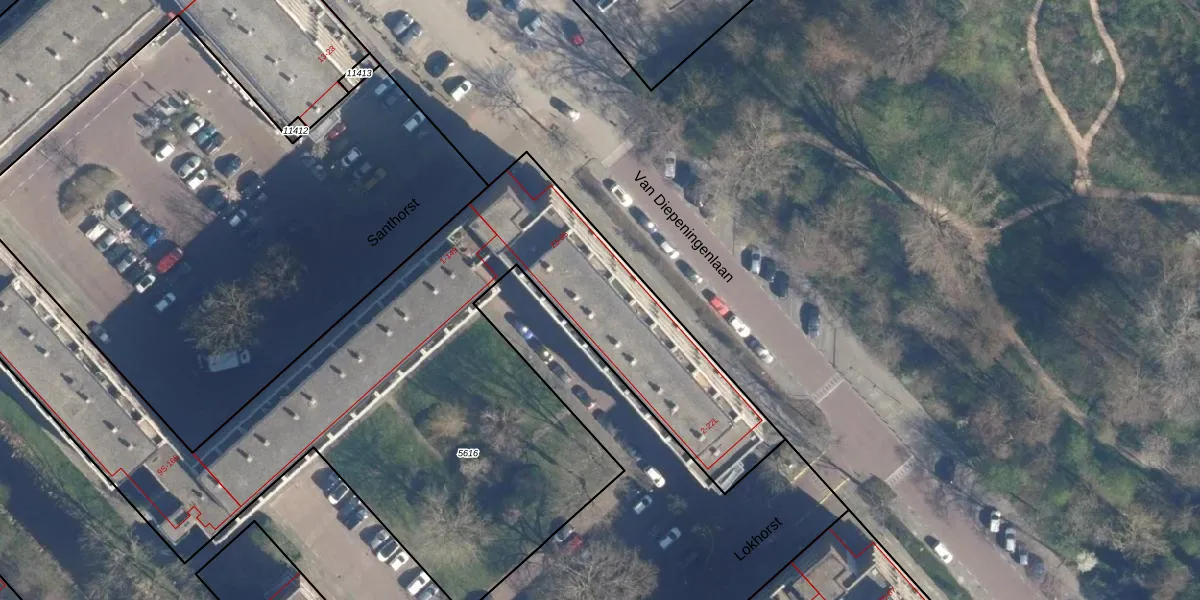Het adres ligt op het perceel LDD00-A-5616, dat zich in de kadastrale gemeente Leiderdorp bevindt. De oppervlakte van het perceel is 3876 m². Dat is groter dan gemiddeld in Leiderdorp, waar de gemiddelde perceeloppervlakte op 1289,87 m² ligt. De grootste perceeloppervlakte in de kadastrale gemeente is 43,4 ha. De kleinste oppervlakte bedraagt 0 m². Op het perceel liggen in totaal 110 adressen. In de Basisregistratie Kadaster (BRK) werden de grenzen van het perceel geregistreerd op 03-05-2007.