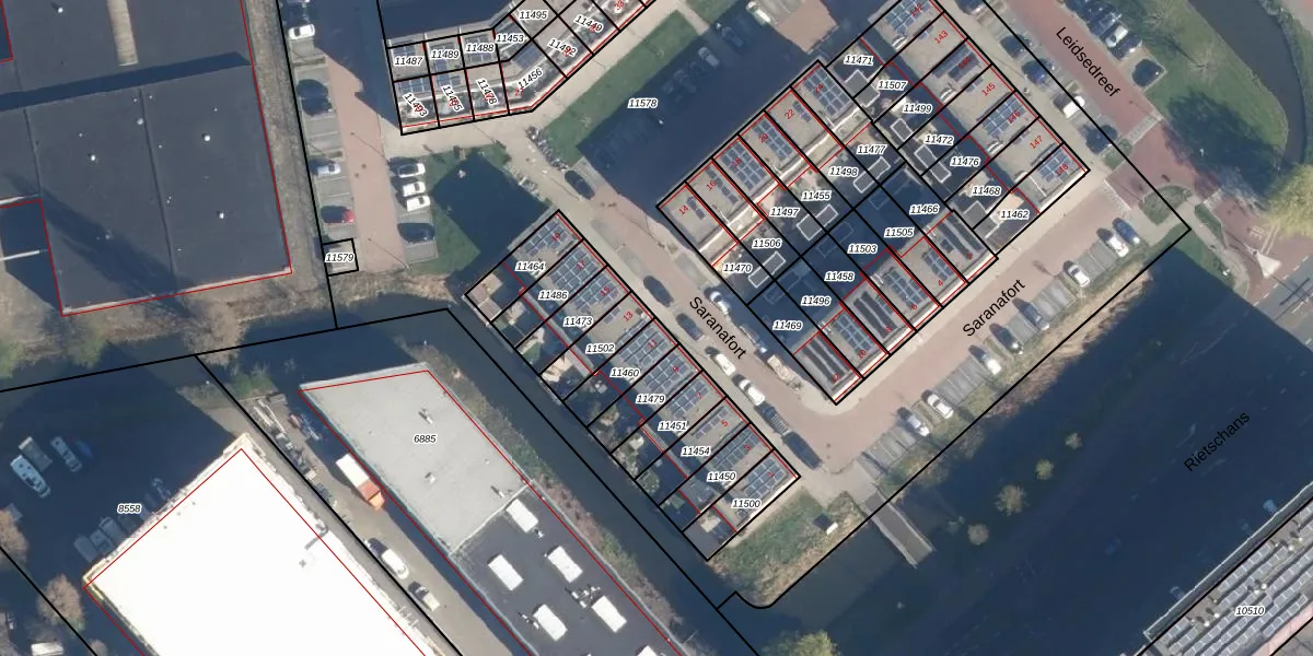 Saranafort 11 is gelegen op kadastraal perceel LDD00A11460. Deze kadastrale aanduiding is uniek en wordt gebruikt door het Kadaster om eigendomsrechten en andere zakelijke rechten vast te leggen. Het perceel maakt onderdeel uit van de kadastrale gemeente Leiderdorp.