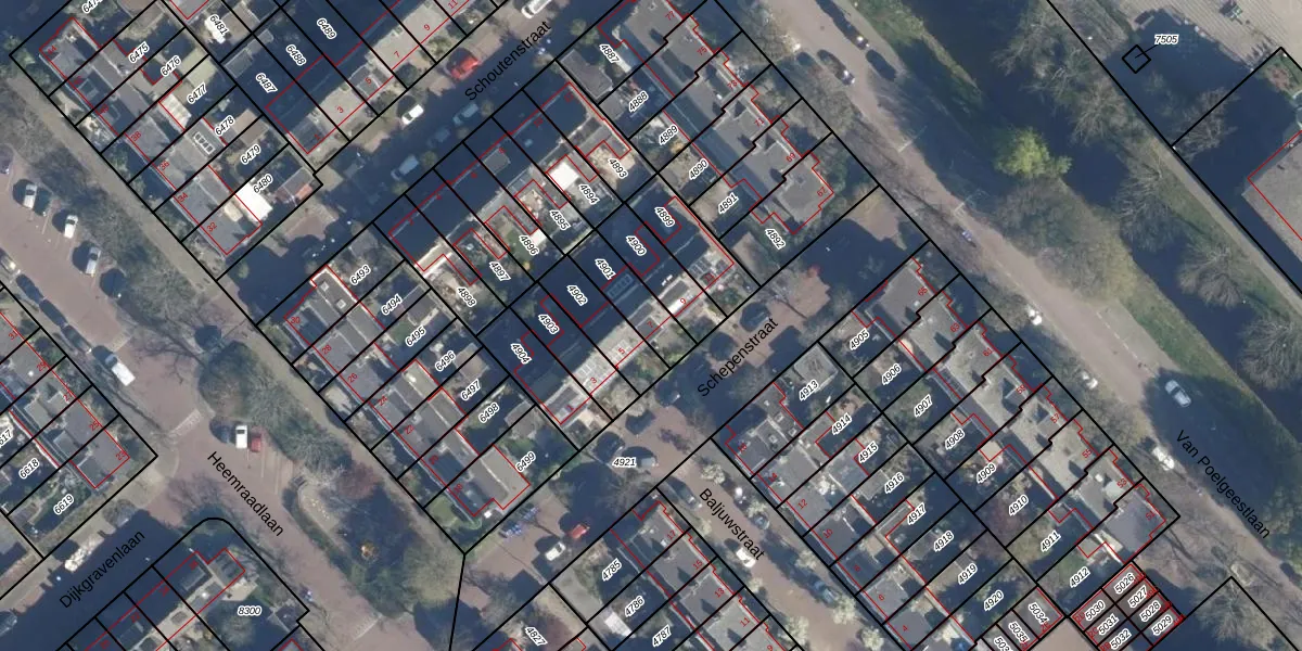 Schepenstraat 7 is gelegen op kadastraal perceel LDD00A4901. Deze kadastrale aanduiding is uniek en wordt gebruikt door het Kadaster om eigendomsrechten en andere zakelijke rechten vast te leggen. Het perceel maakt onderdeel uit van de kadastrale gemeente Leiderdorp.