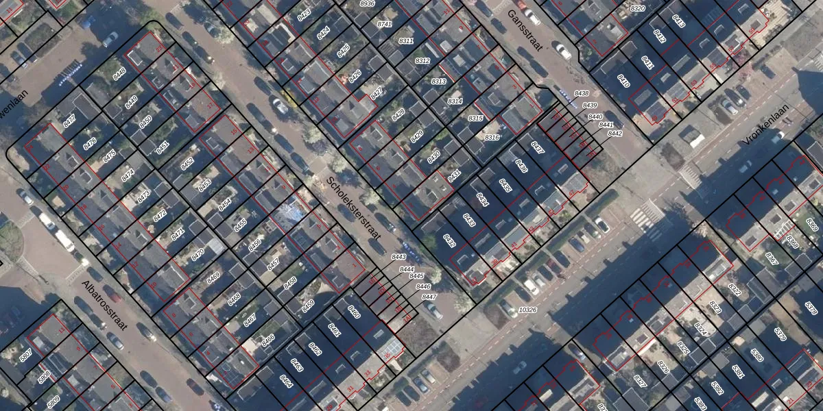 Gebruik de zoekbalk of klik op een perceel voor informatie over de adressen binnen dit perceel.