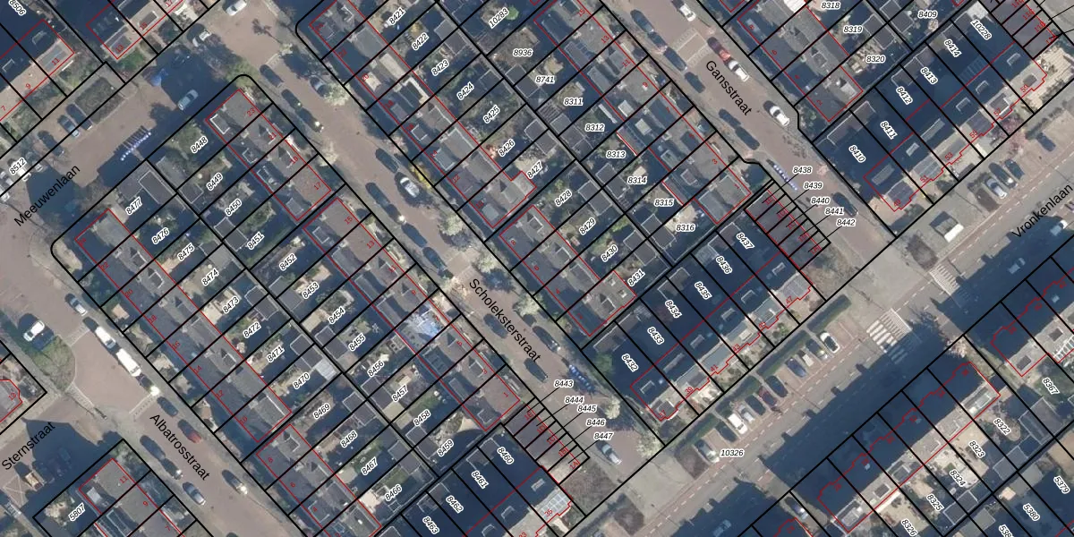 Gebruik de zoekbalk of klik op een perceel voor informatie over de adressen binnen dit perceel.