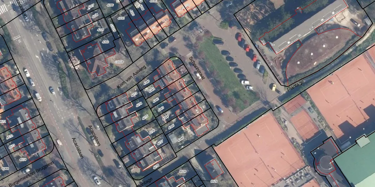 Het perceel waarop het adres ligt is LDD00-A-4343. De afkorting 'LDD00' staat voor kadastrale gemeente Leiderdorp. Het perceel is kleiner dan gemiddeld in Leiderdorp. Het perceel is 153 m² groot, terwijl het gemiddelde ligt op 1290,54 m². Het kleinste perceel in de kadastrale gemeente is 0 m² groot. De grootste perceeloppervlakte is 43,4 ha. Op het perceel bevinden zich geen andere adressen. De huidige grenzen van het perceel zijn digitaal in de Basisregistratie Kadaster (BRK) geregistreerd op 06-02-2002.