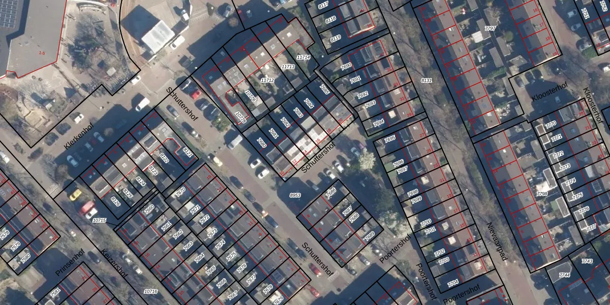 Schuttershof 14 is gelegen op kadastraal perceel LDD00A7682. Deze kadastrale aanduiding is uniek en wordt gebruikt door het Kadaster om eigendomsrechten en andere zakelijke rechten vast te leggen. Het perceel maakt onderdeel uit van de kadastrale gemeente Leiderdorp.