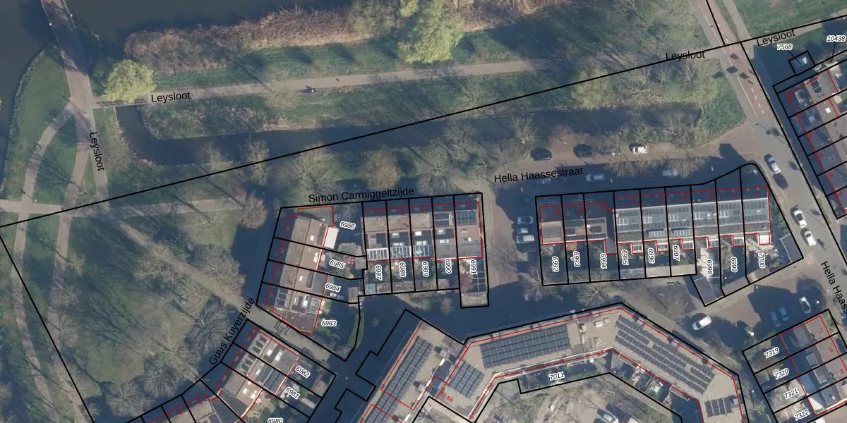 Gebruik de zoekbalk of klik op een perceel voor informatie over de adressen binnen dit perceel.