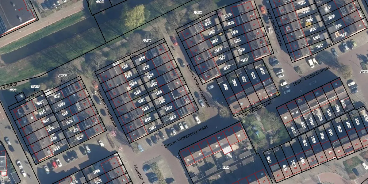 Gebruik de zoekbalk of klik op een perceel voor informatie over de adressen binnen dit perceel.