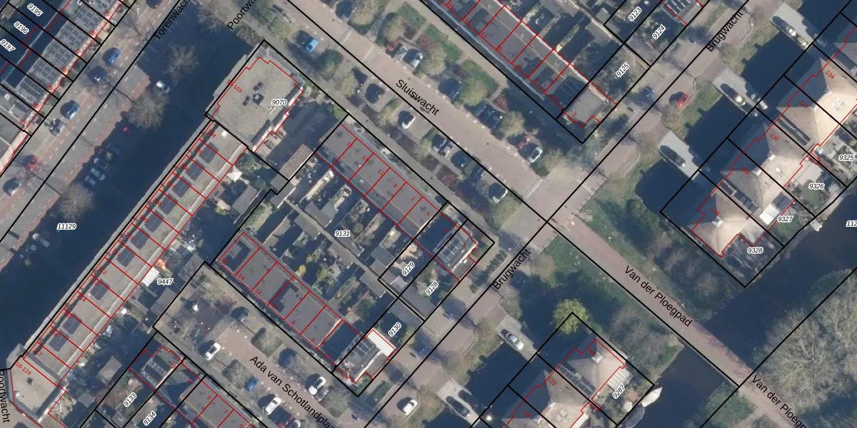 Sluiswacht 5 is gelegen op kadastraal perceel LDD00A9131. Deze kadastrale aanduiding is uniek en wordt gebruikt door het Kadaster om eigendomsrechten en andere zakelijke rechten vast te leggen. Het perceel maakt onderdeel uit van de kadastrale gemeente Leiderdorp.