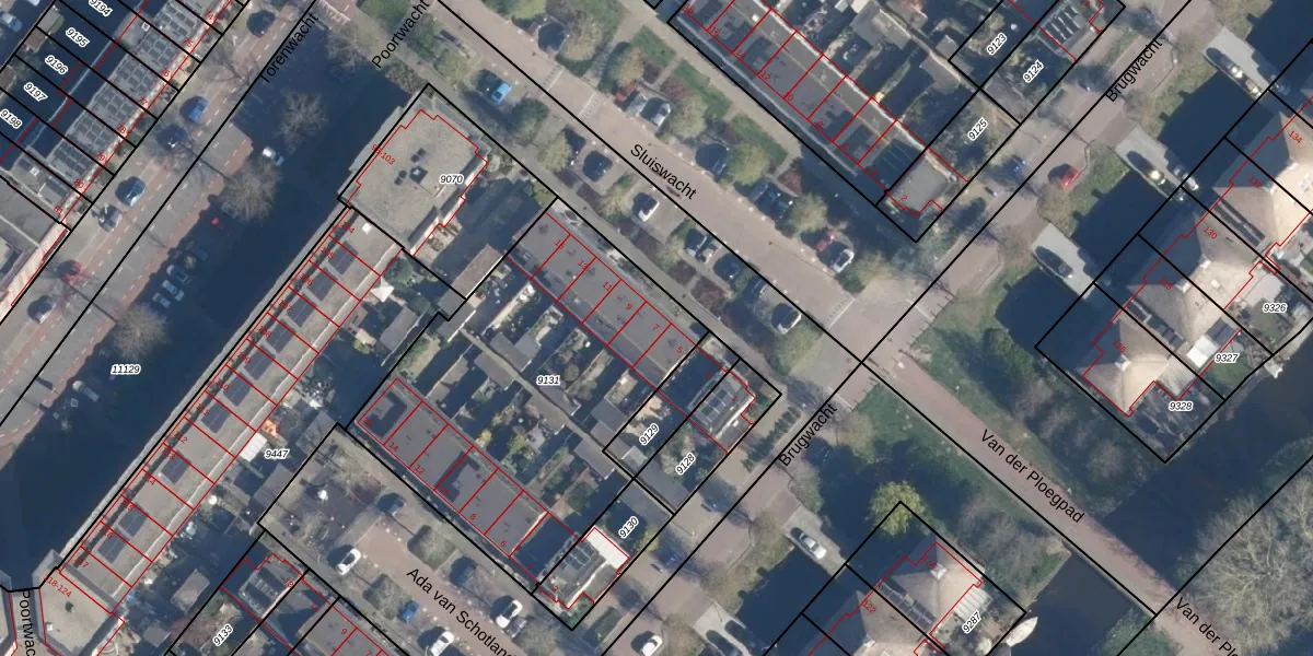 Sluiswacht 7 is gelegen op kadastraal perceel LDD00A9131. Deze kadastrale aanduiding is uniek en wordt gebruikt door het Kadaster om eigendomsrechten en andere zakelijke rechten vast te leggen. Het perceel maakt onderdeel uit van de kadastrale gemeente Leiderdorp.