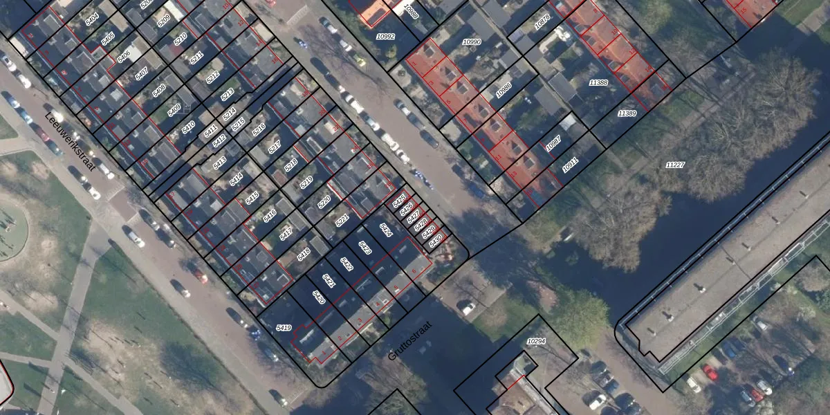 Het adres is gelegen op perceel 5426 in de sectie A en de kadastrale gemeente Leiderdorp. De kadastrale aanduiding is aldus LDD00-A-5426. Het perceel is 19 m² groot. Dat is kleiner dan de gemiddelde perceeloppervlakte in Leiderdorp, dat op 1290,14 m² ligt. Het kleinste perceel in de kadastrale gemeente is 0 m² groot. De grootste perceeloppervlakte is 43,4 ha. Dit is het enige adres dat aanwezig is op het perceel. De laatste wijziging in het de Basisregistratie Kadaster (BRK) was op 31-01-2002.