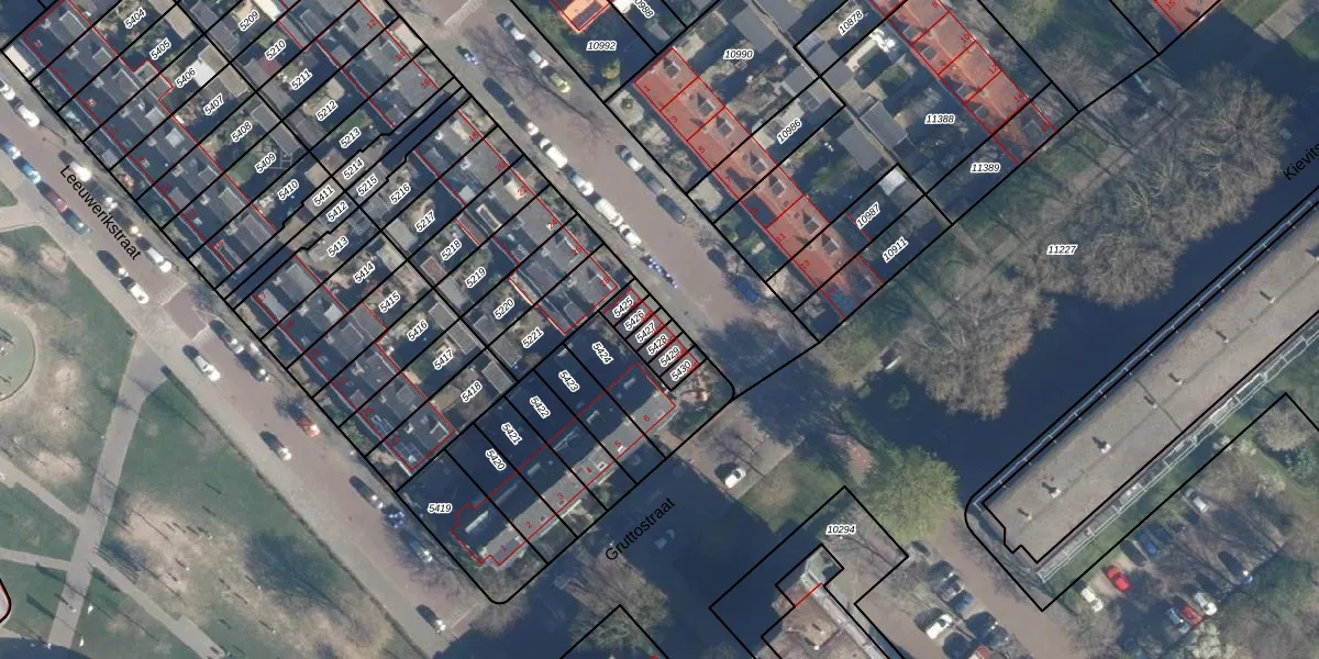 Gebruik de zoekbalk of klik op een perceel voor informatie over de adressen binnen dit perceel.