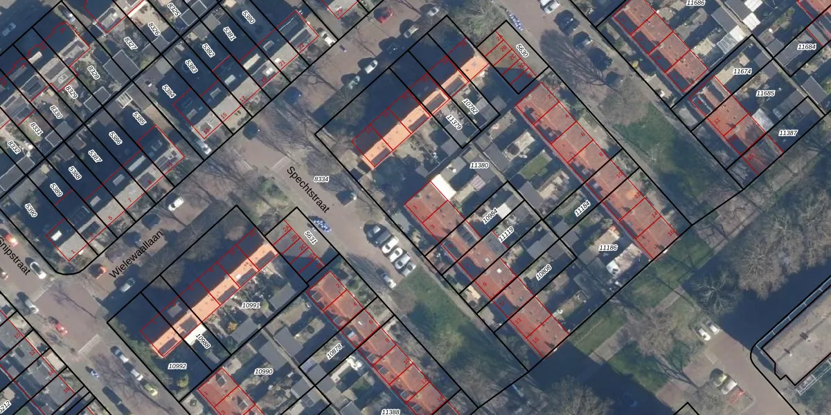 Het perceel waarop Spechtstraat 1 staat heeft een oppervlakte van 2010 m². Dit is een zeer groot perceel. De perceeloppervlakte wordt geregistreerd door het Kadaster. Gedetailleerde informatie over de maten van dit perceel kunt u vinden in het rapport Kadastrale kaart met maatvoering van Spechtstraat 1.