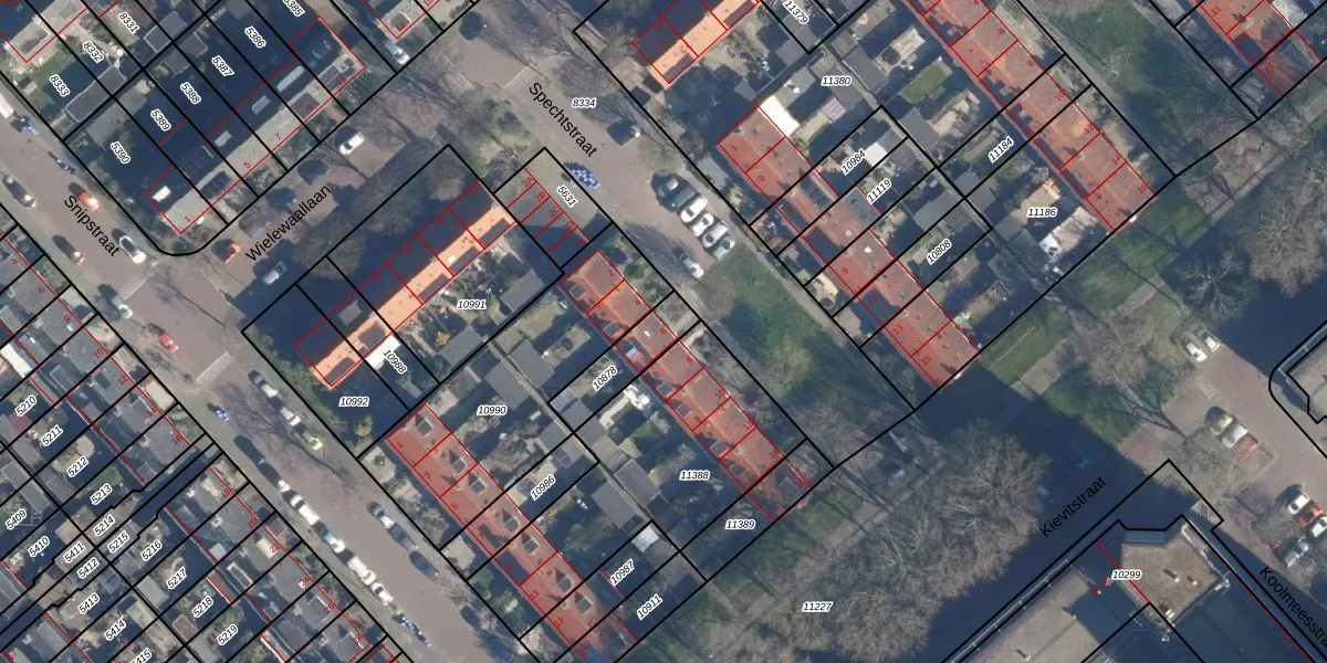 Spechtstraat 6 is gelegen op kadastraal perceel LDD00A10878. Deze kadastrale aanduiding is uniek en wordt gebruikt door het Kadaster om eigendomsrechten en andere zakelijke rechten vast te leggen. Het perceel maakt onderdeel uit van de kadastrale gemeente Leiderdorp.